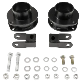 The 66-19180 includes heavy-duty laser-cut powder-coated steel front top mount coil spring spacers providing the ideal 1.75" of front leveling lift. It is that simple to level the front of these new RAM 4WD 2500/3500 HD trucks. New kits include a retention bolt has been added to lock the spacer to the frame and shock extensions have been added to optimize shock length after leveling the truck.