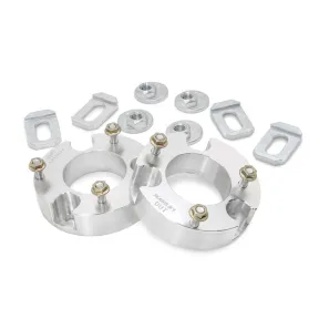 ReadyLIFT offers an all-new 2-inch premium-grade leveling kit for the brand new 2021-2023 Ford F-150 pickups. The new 2021-2023 F-150 has many new factory features when compared to the 2015-2020 model. Some of those new innovations can be found on the F-150 chassis in the form of different suspension components. While some changes at first observation, the changes were profound enough to command an all-new ReadyLIFT leveling kit created by our engineering team. The all-new 66-2120 F-150 leveling kit provides 2" of front leveling lift which is ideal for a true visually level stance on this new Ford pickup. Constructed from aircraft-grade 6061-T6 billet Aluminum and precision-machined providing an exact fit with the proper amount of strut offset for 2" of lift, this new leveling kit also includes new alignment cam plates and cam nuts ensuring a perfect alignment and geometry after installation. Leveling kit 66-2120 fits both 2WD/4WD 2021-2023 F-150 pickups in most trim packages and provides a nice level stance while maintaining the factory ride and handling. Leveling kit 66-2120 works with all the newest safety, security and capability features available on these new F-150 trucks. When it comes to aftermarket wheels and tires, our 66-2120 leveling kit will allow you to install up to a 295/60-20 tire on a 20x9 +18 wheel with no trimming required. NOTE: Not compatible with Ford BlueCruise
