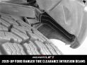 ReadyLIFT now offers a solution for Ford Ranger trucks, specifically the 2019-2023 2WD/4WD models, looking to accommodate larger wheels and tires. Our 67-2900 Ranger replacement High-Clearance Anti-Intrusion Beams are designed to address the challenge of running larger tires without interfering with the factory offset intrusion beams (commonly referred to as crash bars). These factory beams serve a vital role in collision safety, but they limit tire clearance when using ReadyLIFT Ranger leveling and lift kits. Our high-clearance beams are engineered for precision using heavy-duty laser-cut and robot-welded steel, meeting the engineering specifications of the factory anti-intrusion beams, as confirmed by Finite Element Analysis. This accessory kit, designated as 67-2900, is tailored exclusively for the 2019-UP Ford Ranger front suspension. It includes two forward and two rearward replacement high-clearance anti-intrusion beams. Installation is a straightforward process involving minor disassembly to remove the factory beams and replace them with the ReadyLIFT high-clearance beams. Notably, the notched design of these beams ensures increased tire turning clearance, enabling the use of up to a 285/70-17 tire (33") on vehicles equipped with ReadyLIFT 3" lift kits. The entire installation can be completed in approximately 2 hours, whether your Ford Ranger is lifted, leveled, or in its stock configuration. Throughout this process, the safety and security features that protect occupants are retained, providing peace of mind to Ford Ranger owners seeking improved tire clearance for their vehicles.