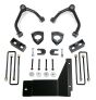 Introducing the ReadyLIFT 4.0" SST Lift Kit for 2007-2013 1500-series Silverado/Sierra 6-lug 4WD Trucks. This kit features ultra-strong TCT free-floating pivot bushings for self-lubrication and friction elimination. This kit accommodates tire sizes up to 33" on aftermarket wheels. Popular tire options include 33x11.50 on 22x9.5 wheels with 5.5" backspacing, 17x9 wheels with a +0 offset on a 285/70R17, or with minor trimming, a 295/70R17. Note that this kit is designed for use with aftermarket wheels. The 4.0" SST Lift Kit raises the front of your 2007-2013 Silverado/Sierra 1500 4WD truck by 4.0" using robust 4.0" powder-coated steel strut extensions that attach directly to the factory strut without any irreversible modifications. Our kit includes a 100% DOM tubular Upper Control Arm with OEM-style ball joints, eliminating the need for spindle modifications. Our CNC-machined 6061-T6 billet Aluminum differential drop brackets ensure perfect front axle and CV angles without compromising driveline integrity, and they come with a sturdy powder-coated plate steel skid plate for differential protection. To lift the rear, this system includes 3.0" OEM-style cast iron rear lift blocks and u-bolts, providing the correct pinion angle correction and axle locating ears for optimal performance. A set of steel rear shock extensions keeps your factory rear shocks in their original position, maintaining excellent ride quality. As with all ReadyLIFT products, the 69-3485 SST Lift Kit System is backed by our Limited Lifetime Warranty. Please note that this kit is compatible with aftermarket wheels with a backspacing of 5.25". If you use stock wheels with larger tires, you'll need our CNC-machined billet Aluminum wheel spacer (10-3485). It's essential to mention that this kit does not work with AWD Denali Trucks or 2013 Z71 4WD trucks with Rancho front struts. For 2007-2011 Z71 trucks, precise measurements are required to ensure compatibility. This kit is not designed for off-road use.