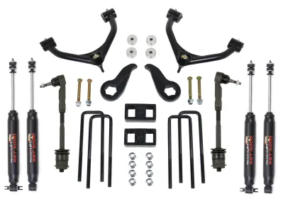 ReadyLIFT Suspension Inc. is excited to offer new 2011-2019 Chevy and GMC 2500HD truck owners a lift solution that won't break the bank nor permanently modify your truck. This is a true bolt-on Lift kit! The 69-3512 SST Lift Kit by ReadyLIFT will lift the front of your new HD truck a maximum of 3.5"! This awesome SST Lift Kit for new GM HD trucks includes a pair of tough heavy-duty tubular steel upper Control Arms engineered to match the strength of your truck. 2011-2019 2500HD-specific lift-oriented ReadyLIFT forged torsion keys provide an adjustable lift while maintaining the factory ride. These super strong forged torsion keys are stronger than stock with the same design and features an indexing that is unique to this kit! The 69-3512 Lift Kit also includes CNC-machined differential drop spacers which lowers the differential and puts the front CV axles into safe factory angle on 4WD trucks. 2WD trucks will not use the diff spacers. To lift the rear of your new Chevy Silverado 2500HD truck, the ReadyLIFT SST Lift Kit includes OEM style 1.0" cast iron rear lift blocks complete with new U-bolts and hardware. This kit includes SST3000 Shocks. Also included with this kit are new super strong tie-rod end assemblies to replace the weak factory versions. For the longest time, GM tie rod assemblies have been a weak link on all GM trucks. These heavy duty steering assemblies install easily and incredibly stronger than the OEM units. You won't find this kind of attention to detail with any other lift kit for the new GM HD trucks! This great combination gives the new GM HD trucks a great raised stance using super strong components and allows for up to a 34" tall tire. NOTE: Single Rear Wheel Only. NOTE: Not for use on trucks equipped with factory TOP overload spring commonly referred to as a camper package.