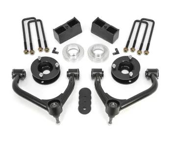 ReadyLIFT introduces the 69-39400 4" SST Lift Kit for 2019-2023 Chevy Silverado and GMC Sierra 1500, compatible with Adaptive Ride Control Suspension (ARC). This kit, replacing the 69-3940, is designed for both ARC and non-ARC trucks, offering a balance between a lifted stance and factory ride quality. The 4.0" SST lift kit includes a 4" front lift and a 3" rear lift block. The front lift uses heavy-duty, laser-cut fabricated steel top mount strut extensions with an offset for improved strut and wiper seal angles, plus a CNC-machined billet Aluminum pre-load spacer, enhancing driveline orientation. It accommodates up to 295/65-20 tires on 2019-2022 Chevy with XD Series Demodog 20x9 0 offset wheels (35x11.50 max), while the 2019-2023 GMC Sierra and 2023 Chevy fit up to a 295/55-20 tire due to fender flare constraints. The kit features new tubular steel upper control arms with optimized ball joint pivot angles and maintenance-free TCT pivot bushings, ensuring proper suspension geometry. The rear lift includes 3" tall OE-style cast iron rear lift blocks with axle pad locating ears and longer U-bolts, offering a subtle rake that complements GM's body lines and supports towing and payload. However, this kit is not compatible with Trail Boss, ZR2, AT4, or AT4X models, nor with vehicles having rear composite mono-leaf springs, identifiable by round U-bolts. It only works with traditional steel leaf springs, marked by square U-bolts. Tire sizes compatible are 20x9 0 offset 295/65 R20 for 2019-2022 Chevy and 295/55-R20 for 2019-2023 GMC & 2023 Chevy. The use of Auto 4 Hi feature is discouraged, and the kit is not suited for 2019 Limited OLD Body Style vehicles.
