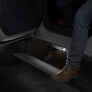 Integrated LED lights illuminate the running board when deployed, providing additional safety and security