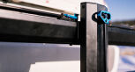 The GuideRail steps away from the traditional carrying style of platform hitch racks; By utilizing dual load arms, the rack completely eliminates frame or fork contact, it allows for asymmetric bike loading to avoid handlebar interference, and it creates a simple aesthetic that virtually blends in with most vehicles. The GuideRail reduces plastic parts to a minimum and maintains the same capacity and reliability of the MonoRail Family. Carrying bikes up to 60lbs per tray, tires up to 3” wide, and wheelbases up to 55” the GuideRail can handle just about anything including most E-bikes. Included is a 10mm square link chain to secure your bikes without stress.