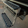 Fold out two-step system for universal utility applications. Mount to a variety of trailers or vehicles. The universal bracket kit comes with three sets of brackets to mount the step on a flat surface, on a cross member or even on a high platform. The brackets orientation can be switched to change the width or height of brackets to the mounting surface.