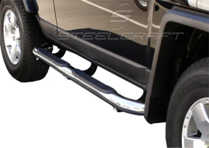 Since 1998, 3" Sidebars have been a staple of the Steelcraft Automotive product lineup. Highlights include E-coated and powder coated carbon steel, durable 3" round tubing, custom mounting brackets, and easy no drill installation