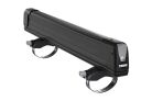 Aerodynamic slide-out rack for convenient loading and unloading of skis and snowboards.