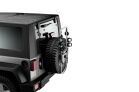 Our heavy-duty bike rack that connects to your rear mounted spare tire now includes Stay-Put Cradles for better stability, an integrated locking cable for better security and a second adapter plate to fit more tire sizes