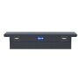 UWS Secure Lock crossover truck tool boxes provide the ultimate in security and convenience, offering you a truck bed tool box unlike any other. It features a unique locking system, an innovative interior and a highly durable design. The Secure Lock truck box operates with two lockable twist handles. These handles are key-operated and allow you to lock the truck tool box from either the driver or passenger side. The two locks also give you the option to lock both sides for maximum security. The lid of the Secure Lock tool box is particularly strong, featuring our patented RigidCore foam-filled design. This gives the lid greater structural integrity and resists bending and warping. Like most UWS tool boxes, this box also features extra-thick aluminum construction, and the tub is welded into a single piece to ensure waterproof protection for your items. It is also equipped with a MicroSeal gasket to keep out dust, grime, moisture and insects. To protect the interior of the Secure Lock tool box, it features a heavy-duty BedRug liner. This protective mat resists dents and damage to the box itself and to your tools and other items, and it helps trap dust and dirt for easy cleanup. The UWS Secure Lock truck tool box offers excellent organization for your tools, featuring an included three-compartment tray and built-in screwdriver holders. The lid is able to open to a complete 90 degrees for easy access to the interior contents, and it is equipped with self-closing struts that automatically close the lid with a slight manual pull, securing the box when your hands are full. The Secure Lock truck tool box is quick and easy to install, and it is available in multiple sizes to provide the perfect fit for your own unique truck bed. Like all UWS products, each Secure Lock crossover truck tool box is proudly assembled right here in the USA for style and long-lasting dependability.