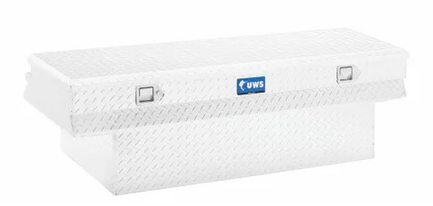 UWS notched utility chest boxes provide unbeatable storage and security for your items in the bed of your truck and on the jobsite. Each box features a corrosion-resistant aluminum construction, a stainless steel locking system and a patented RigidCore foam-filled lid -- all to keep your equipment and valuables safe, well-organized and easily accessible whenever needed. Each UWS truck tool box is constructed from extra-thick aluminum for increased structural strength. The tub is welded together into a single piece for weather resistance and to easily hold heavy tools and other items. The lid features a patented foam core, sandwiched between two aluminum plates. This core greatly increases the rigidity of the lid and helps prevent bending and warping, making operation very smooth. The locking mechanism of the UWS truck tool box provides excellent security for your items, featuring stainless steel, key-operated paddle handles. Stainless steel construction supplies the locks with long-lasting corrosion resistance, and they feature an internal connecting rod that allows the lid to be opened from either side of the truck. For solid protection against the elements, the lid also has a MicroSeal gasket, blocking moisture, dust and insects from getting inside and damaging your valuables. The lid also opens a full 90 degrees for easier access, and it is equipped with self-opening struts for convenient operation when your hands are full. UWS utility chest boxes are available in multiple sizes to accommodate any storage need. Like all UWS products, each one is proudly assembled right here in the USA for style and long-lasting dependability.