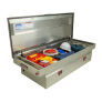 Introducing the re-designed WEATHER GUARD Saddle Box, featuring One Key Simplicity, Improved High Security Locking System, and now PowerSync Capable. The Model 117-0-03 is an extra wide aluminum truck tool box for full size trucks and is powder coated in a clear ARMOR TUF finish ensuring years of dependability. The box features the new push button lock that can code multiple boxes on a truck or entire fleet to the same key. The improved high security locking system provides unmatched protection. The box is now compatible with the new PowerSync interior lights and remote keyless entry accessories.
