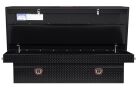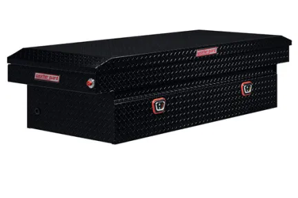 Introducing the re-designed WEATHER GUARD Saddle Box, featuring One Key Simplicity, Improved High Security Locking System, and now PowerSync Capable. The Model 117-5-03 is an extra wide aluminum truck tool box for full size trucks and is powder coated in a gloss black ARMOR TUF finish ensuring years of dependability. The box features the new push button lock that can code multiple boxes on a truck or entire fleet to the same key. The improved high security locking system provides unmatched protection. The box is now compatible with the new PowerSync interior lights and remote keyless entry accessories.