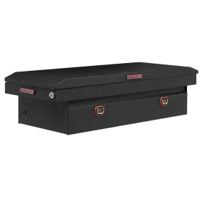 Introducing the re-designed WEATHER GUARD Saddle Box, featuring One Key Simplicity, Improved High Security Locking System, and now PowerSync Capable. The Model 117-52-03 is an extra wide aluminum truck tool box for full size trucks and is powder coated in a textured matte black ARMOR TUF finish ensuring years of dependability. The box features the new push button lock that can code multiple boxes on a truck or entire fleet to the same key. The improved high security locking system provides unmatched protection. The box is now compatible with the new PowerSync interior lights and remote keyless entry accessories.