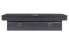 Introducing the re-designed WEATHER GUARD Saddle Box, featuring One Key Simplicity, Improved High Security Locking System, and now PowerSync Capable. The Model 127-6-03 is an aluminum truck tool box for full size trucks and is powder coated in a gunmetal gray ARMOR TUF finish ensuring years of dependability. The box features the new push button lock that can code multiple boxes on a truck or entire fleet to the same key. The improved high security locking system provides unmatched protection. The box is now compatible with the new PowerSync interior lights and remote keyless entry accessories.