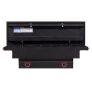 Introducing the re-designed WEATHER GUARD Saddle Box, featuring One Key Simplicity, Improved High Security Locking System, and now PowerSync Capable. The Model 131-52-03 is a low profile aluminum truck tool box for compact trucks and is powder coated in a textured matte black ARMOR TUF finish ensuring years of dependability. The box features the new push button lock that can code multiple boxes on a truck or entire fleet to the same key. The improved high security locking system provides unmatched protection. The box is now compatible with the new PowerSync interior lights and remote keyless entry accessories.
