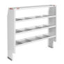 Heavy duty adjustable van shelving units help maximize van storage customization and capacity. Model 9366-3-03 includes 4 shelves and measures 60 in high, 60 in wide and 16 in deep when assembled. New design adjustable shelves have captive nuts at each corner for easier assembly and quieter operation. Accessory mounting holes in the shelves eliminate the need for mounting brackets or drilling. Manufactured of heavy gauge steel and fully hemmed for extra strength and durability. Two tapered end panels with notched bases to maximize floor clearance for drawer units or supplies. Includes mounting hardware and a set of four adjustable dividers for each shelf.