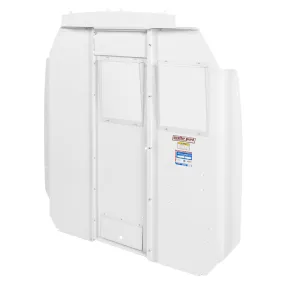 - no wing kit required Vertical panel design reduces ambient noise levels Exclusive 9 in x 12 in Dog Hatch Door allows easy loading of long materials by utilizing the floor space in front of the bulkhead Provides improved heating and cooling efficiency in the passenger area, reduces noise levels as well Polycarbonate Windows on all bulkheads allow for improved visibility Optional Hinge Kit converts bulkhead to swing door version