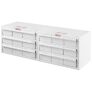 Customize your van storage with drawer cabinets that securely organize items that need to be located quickly and easily. The Model 9918-3-03 van storage cabinet kit is a work van accessory consisting of two cabinets that measure 12 inches high, 34 inches wide, and 12 inches deep when mounted side by side. The van storage drawers provide 18 bins for a variety of small parts. These bins have hook and loop fasteners to keep them in place.